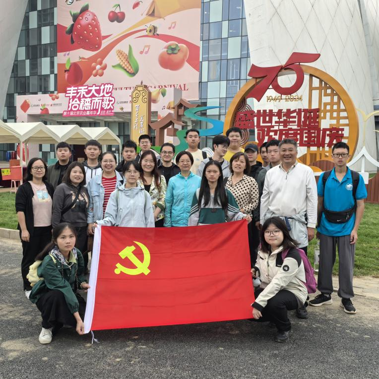 为庆祝中华人民共和国成立75周年,深入学习贯彻党的二十届三中全会精神、全国教育大会精神,9月28日,公司教师党支部联合员工开展了“增强爱国情怀 激发学习动力”的主题党日活动。在北京农业嘉年华投资管理有限公司的协助下,公司共30余名师生来到北京农业嘉年华开展现场教学参观与调研交流。
