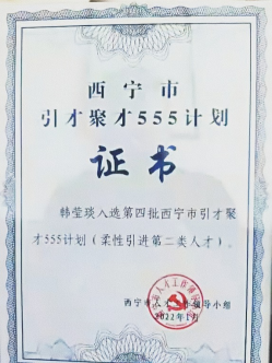 热烈祝贺太阳集团tyc33455韩莹琰教授入选第四批西宁市引才聚才555计划(柔性引进第二类人才)!