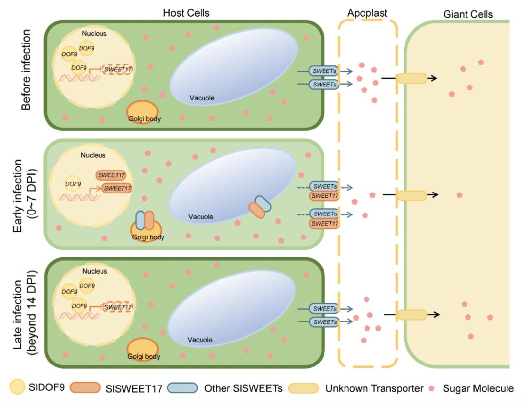 公司王绍辉/赵文超教授课题组揭示SlDOF9-SlSWEET17模块调控番茄对根结线虫敏感性的机制