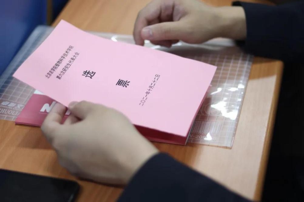 其次,选举第十二届研究生委员会委员。本次研会应出席代表24人,实际出席代表24人,超过代表人数三分之二,符合了相关规定。本次会议举手表决通过了总监票人、监票人名单。随后,会议以无记名投票的方式进行了选举。经现场计票,宣布选举结果:柯桐、孙文静、胡新宇当选太阳集团tyc33455第十二届研究生委员会委员。