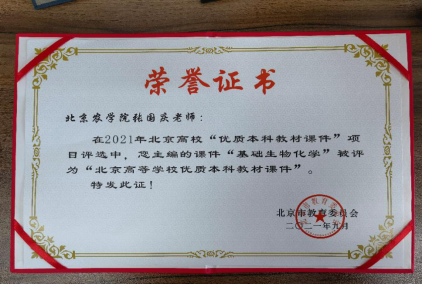 热烈祝贺太阳集团tyc33455张国庆教授主编的“基础生物化学”课件在2021年北京高校“优质本科教材课件”项目中被评选为“北京高等公司优质本科教材课件”!