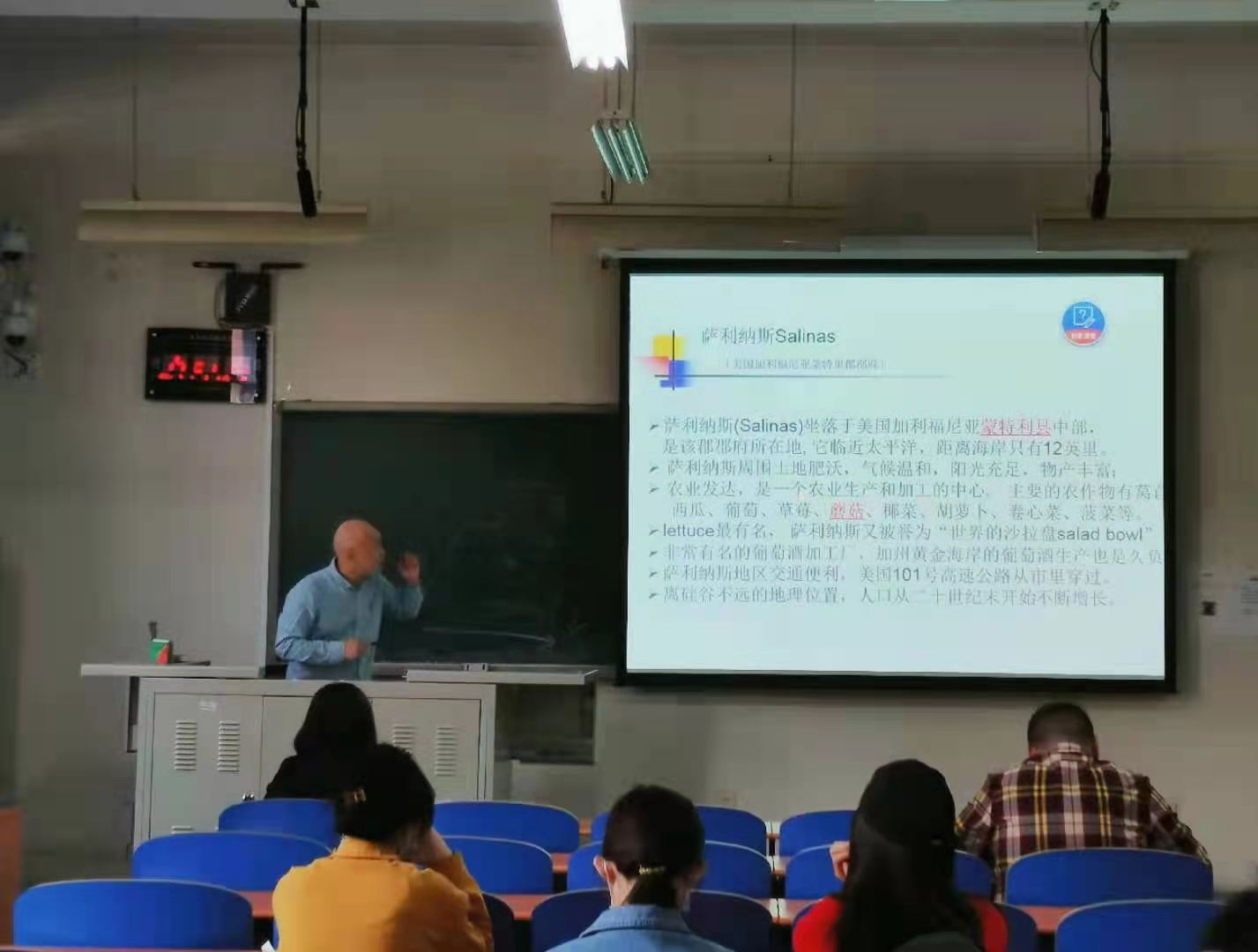 蒋涛经理主要从四个方面对美国蔬菜田间种植进行了讲解,介绍了许多优秀的田间管理技术并结合同学们日常生活经常接触到的事物进行联系,便于同学们理解。同时蒋涛经理从美国田间蔬菜种植的专业分工及安全卫生等方面的问题进行了优劣对比,并在讲座的最后让同学们观看了马来西亚水培蔬菜的种植图片。