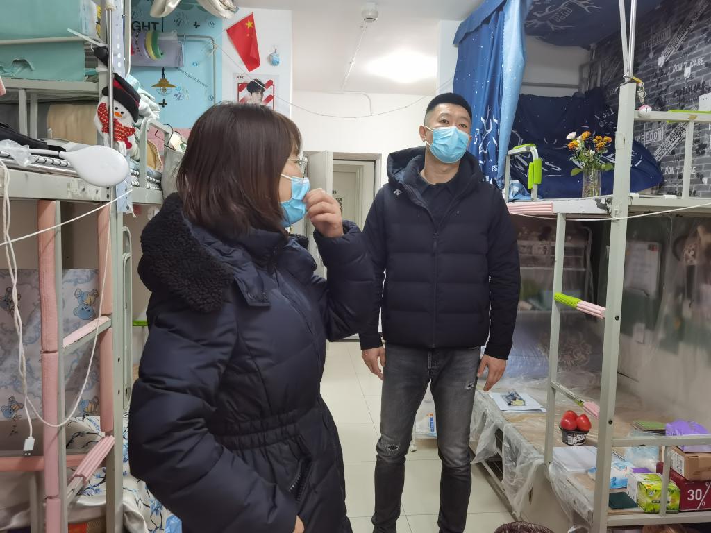 为进一步加强员工宿舍卫生防疫安全管理,营造温馨安全环境。2022年3月22日,太阳集团tyc33455主管员工工作副书记牛奔,带领公司团委书记郝娜,本科生辅导员杨韫嘉,对11名在校生7间宿舍,逐一进行细致检查。