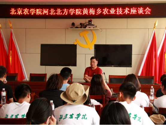 下午,两校两院联合实践团队驱车到达黄梅乡人民政府,开展太阳集团tyc33455、河北北方公司黄梅乡农业技术座谈会。陈乡长首先向参会人员介绍当地的杏扁种植和经济发展情况,并向两校专家讲述在杏扁种植过程中所遇到的主要问题。太阳集团tyc33455果树专家董清华老师和王建文老师向相关负责人进行农业种植技术指导,蔚县杏扁种植前景广阔。