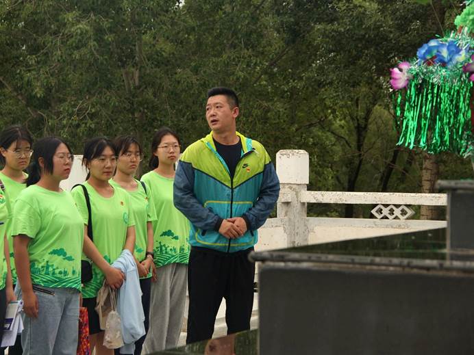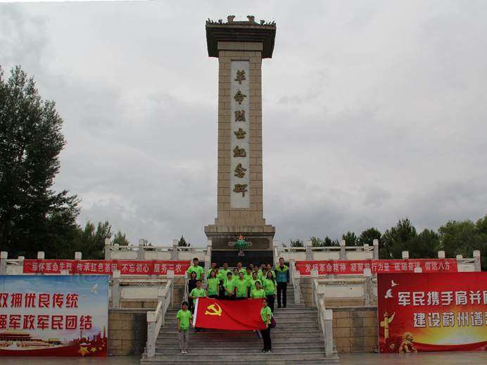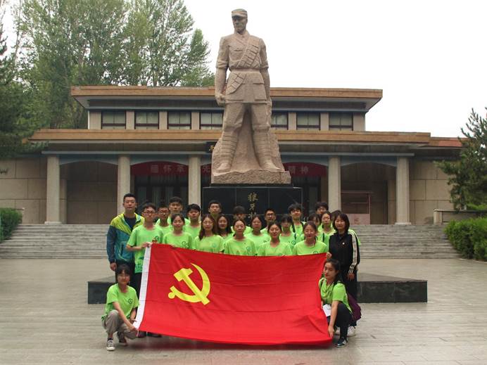 当天下午,伴着绵绵的细雨,实践团怀着沉重和肃穆的心情来到了蔚县烈士陵园,全体党员团员瞻仰了革命烈士纪念碑,聆听革命烈士英雄故事,学习革命烈士英雄事迹。在烈士墓碑前全体同学肃立默哀并献花缅怀,党员代表向革命烈士纪念碑敬献花篮,向革命烈士表达崇高敬意和深切悼念。以马宝玉烈士为代表的一大批革命仁人志士,在长期的革命斗争和武装斗争中,六万山区的英雄儿女,为民族独立和人民解放前仆后继,不惜抛头颅洒热血的英雄壮举,感染着每一个人的思想灵魂。