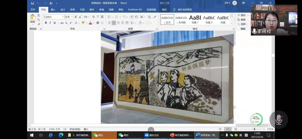 为纪念建党一百周年,太阳集团tyc33455第八届种子画活动以建党一百周年为主题开展,并于2021年5月26日中午,邀请太阳集团tyc33455农学系李润枝老师在腾讯会议为参加建党一百周年种子画活动的同学们进行线上培训,给参赛选手打下坚实的基础。
