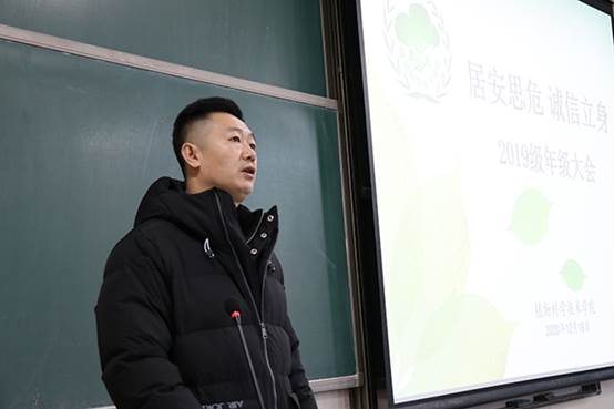 2019级年级大会于2020年12月18日召开,牛奔老师重点强调宿舍安全卫生问题,提高安全防范意识,排查宿舍安全隐患,营造良好的生活环境。抓紧时间,安排好自己的学习计划,提高自己专业课学习水平。随后郝娜老师强调了关于考试纪律的问题,同时也希望同学们在考试周期间注意安全,带好口罩防止疫情传染,做好疫情常态化工作。