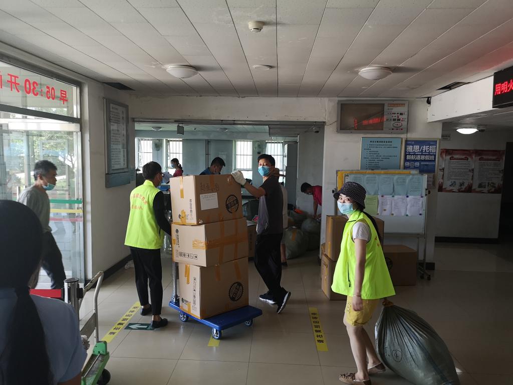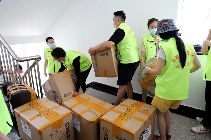 由衷感谢后勤基建党支部组建的志愿服务队对公司2020届毕业生离校工作的支持!7月7日公司2020届毕业生返校,时间紧、邮寄任务重。一上午近百个箱子挤压在宿舍楼道,行李邮寄工作进展缓慢。身穿绿色荧光马甲的后勤志愿服务队火速支援,炎热的天气,沉重的行李,挡不住服务队一趟趟搬运的步伐。正是因为有你们的帮助,使得这个毕业“寄”含温度,有速度!在此,致上太阳集团tyc33455全体人员的敬意,谢谢大家的帮助!
