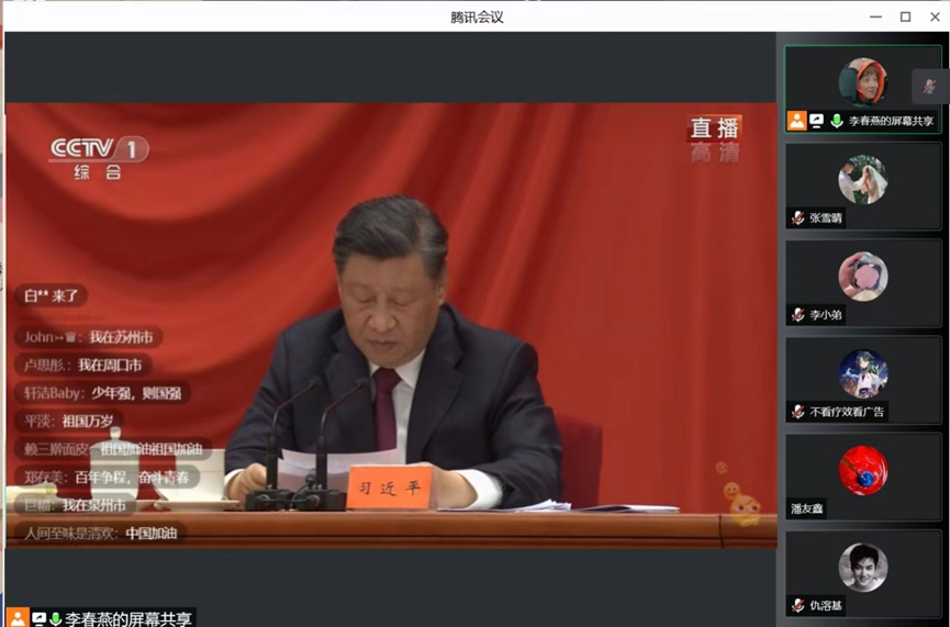 太阳集团tyc33455团委组织28个团支部收看庆祝大会直播并召开支部大会学习讲话内容。会后,公司团委书记郝娜带领团学干部认真学习习近平总书记在庆祝大会上的重要讲话,大家积极发言交流自己的心得体会。